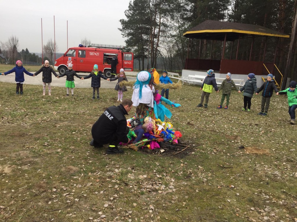 21 marca 2019r. uczniowie klas Ia, Ib i II udali się na spacer w poszukiwaniu oznak wiosny. Zabrali ze sobą kukły Marzanny, które pod okiem strażaków z OSP Chwaęcice zostały spalone. Pożegnaliśmy zimę i powitaliśmy wiosnę. Oby zagościła u nas na dobre.