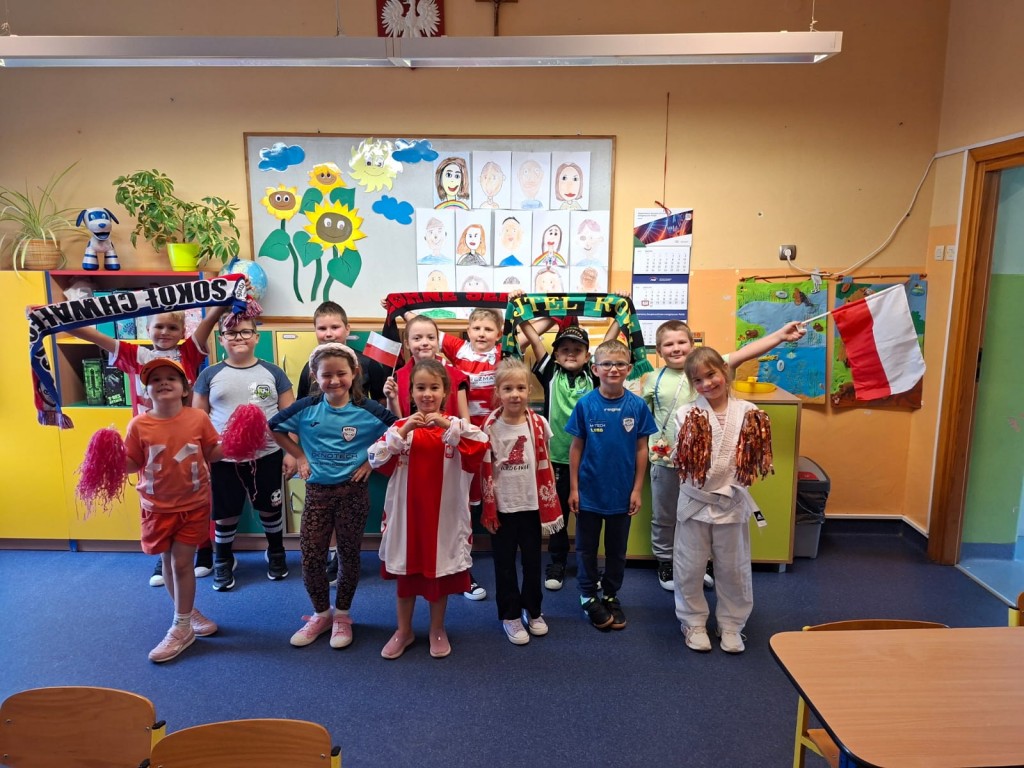 Oprócz tego poniedziałek był Dniem Kibica ( uczniowie przebierali się za kibiców danego kraju, zespołu, konkurencji sportowych....) klasy otrzymały dodatkowe punkty w rywalizacji.