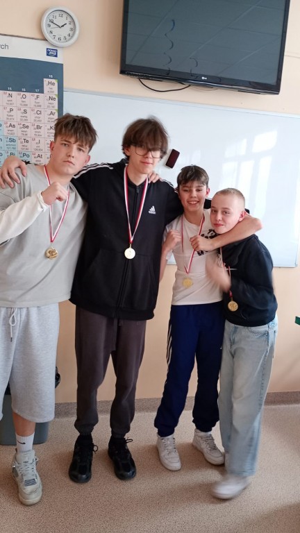 Uczniowie klasy VIII: Wiktor C., Błażej Ż., Rafał H., Dorian P., Dawid K.,