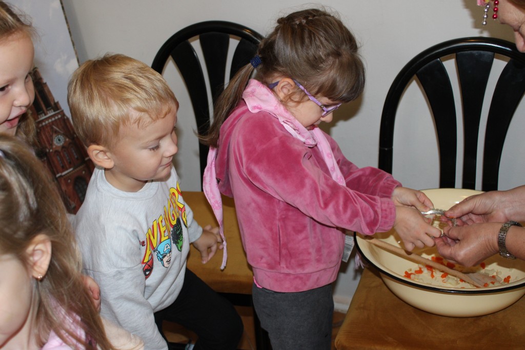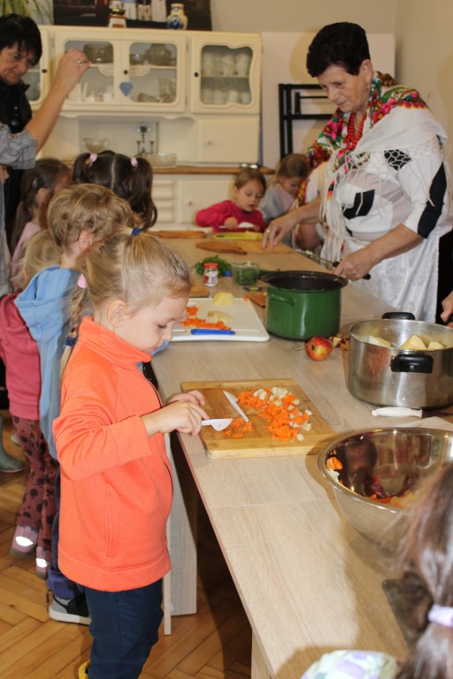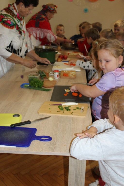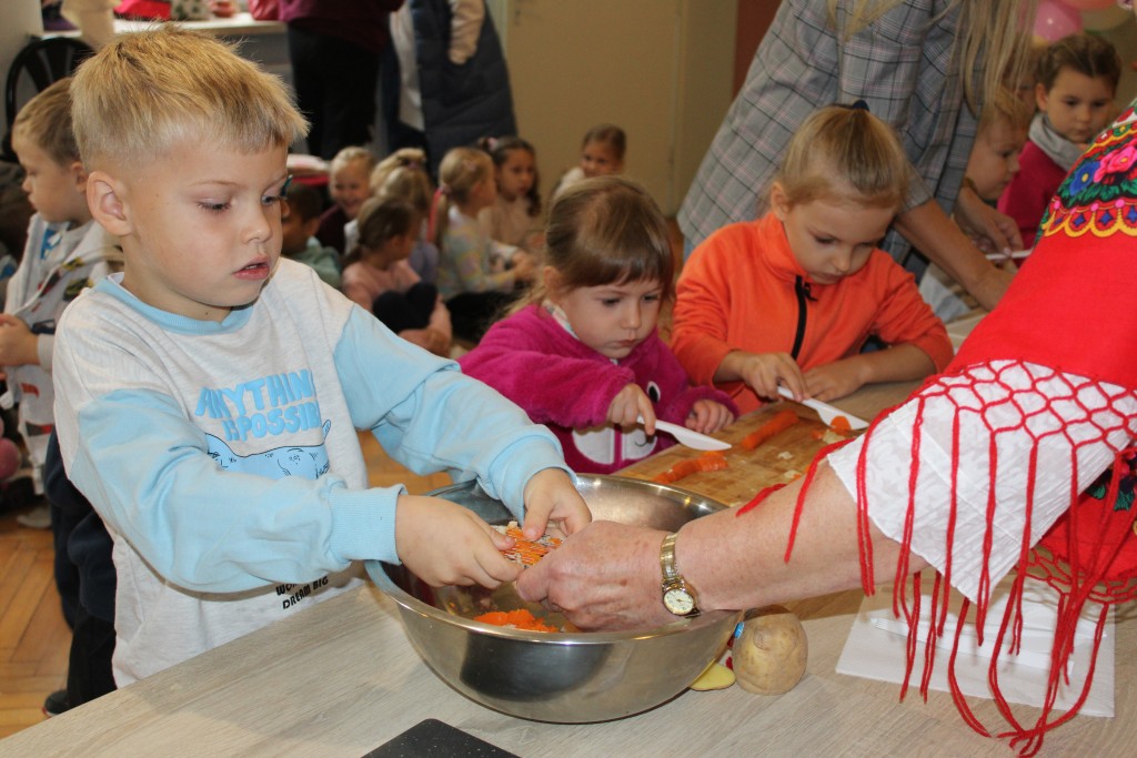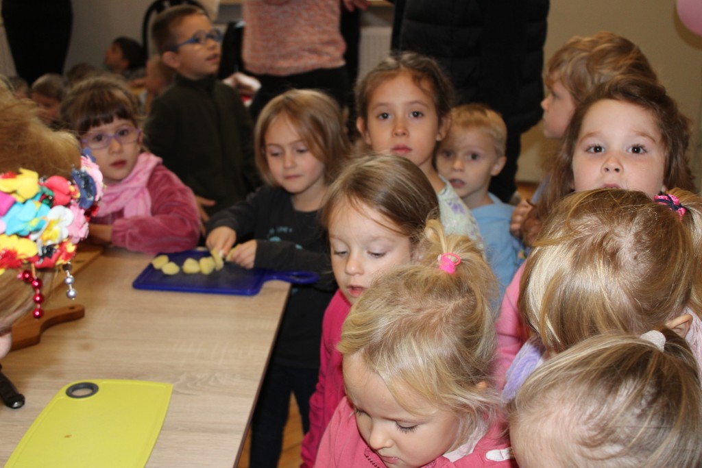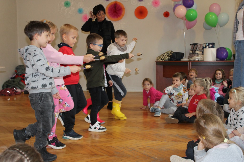 W naszym przedszkolu Dzień Ziemniaka obchodziliśmy 7 października b.r.! Z tej okazji dzieci odwiedziły panie z Koła Gospodyń Wiejskich, które z ogromną serdecznością zaprosiły nas do wspólnego przygotowania śląskiego "szałotu".Spotkanie rozpoczęło się od opowiadania o kartoflu Zenku oraz pogadanki, jakie dania można przyrządzić z ziemniaka. Najważniejszym punktem programu było wspólne przygotowanie sałatki ziemniaczanej.Kiedy sałatka była gotowa, wszyscy z radością zasiedli do degustacji. Smakowała wyśmienicie – bo przygotowana wspólnie, z sercem i uśmiechem!To był wyjątkowy dzień pełen radości, zapachów domowej kuchni i nowych doświadczeń.