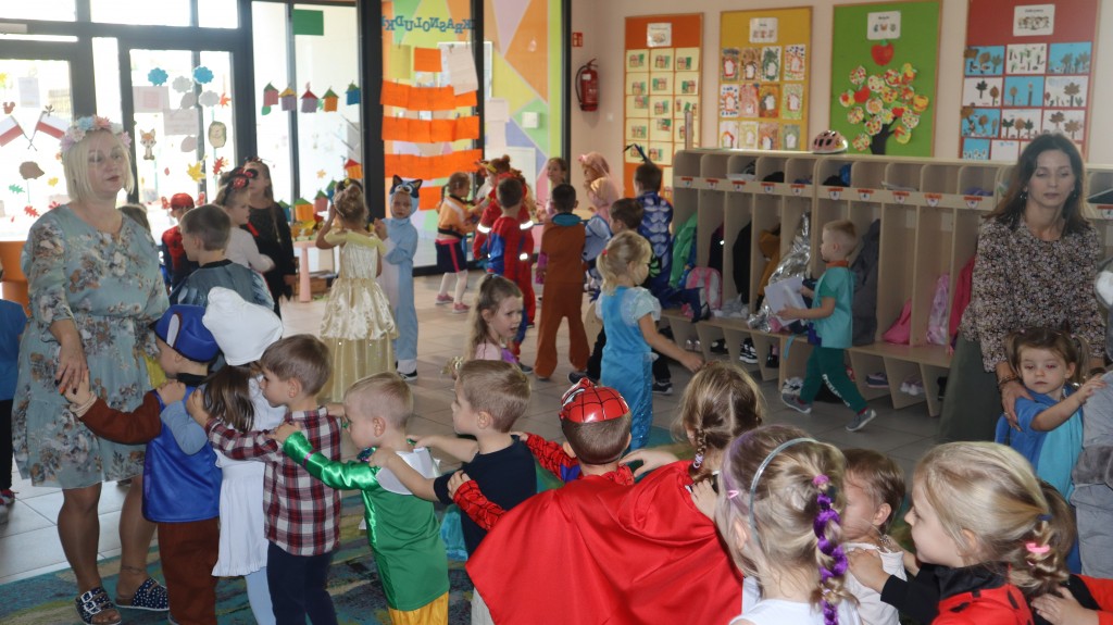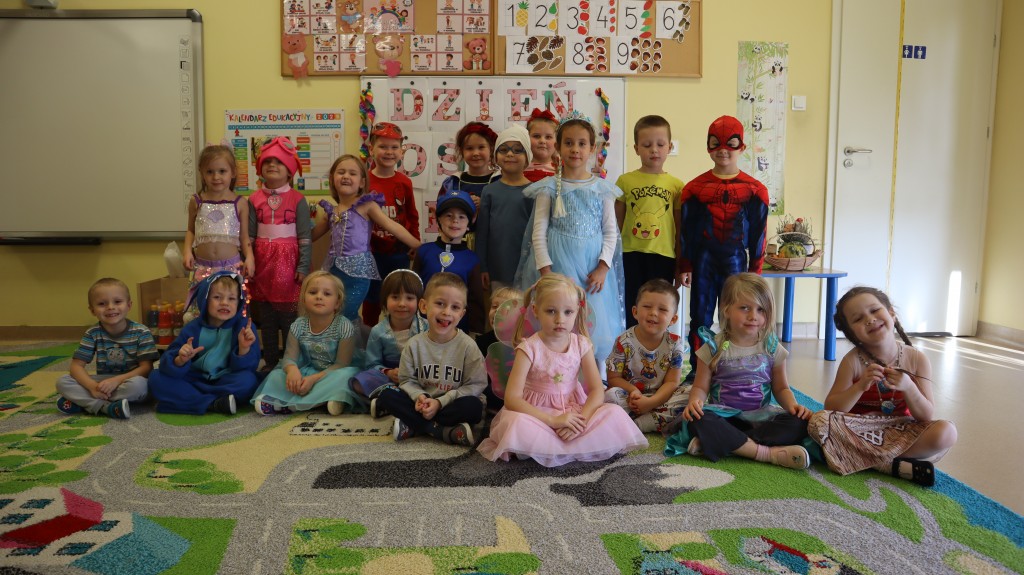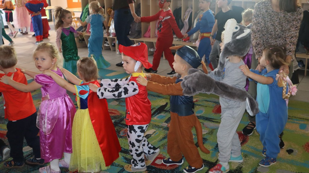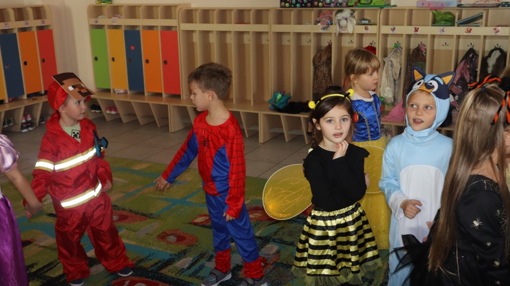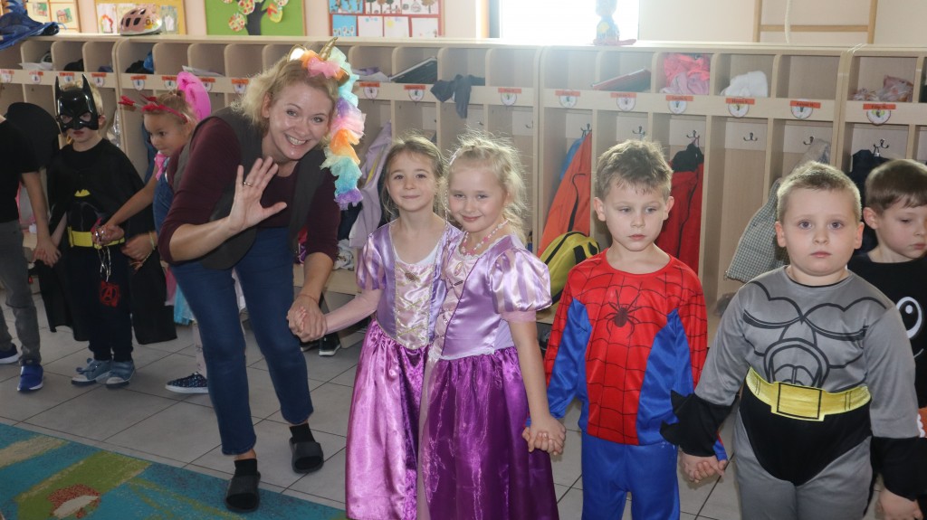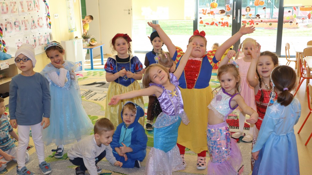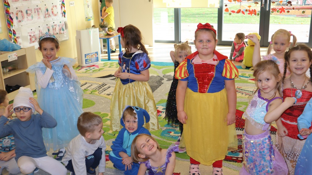 5 listopada b.r. w naszym przedszkolu panowała prawdziwie magiczna atmosfera! Obchodziliśmy Dzień Postaci z Bajek – jedno z najbardziej kolorowych i radosnych świąt w roku. Już od rana przedszkolne sale wypełniły się bohaterami znanych i lubianych bajek. Wśród dzieci można było spotkać księżniczki, rycerzy, czarodziejów, piratów, zwierzątka, superbohaterów i wiele innych bajkowych postaci. Po krótkim powitaniu i zaprezentowaniu strojów rozpoczęliśmy wspólną zabawę taneczną. Przedszkolaki tańczyły do ulubionych dziecięcych przebojów. W przerwach między tańcami dzieci uczestniczyły w quizach i zagadkach bajkowych, odgadywały, z jakich bajek pochodzą znane atrybuty. Było mnóstwo śmiechu, radości i wspólnej zabawy.