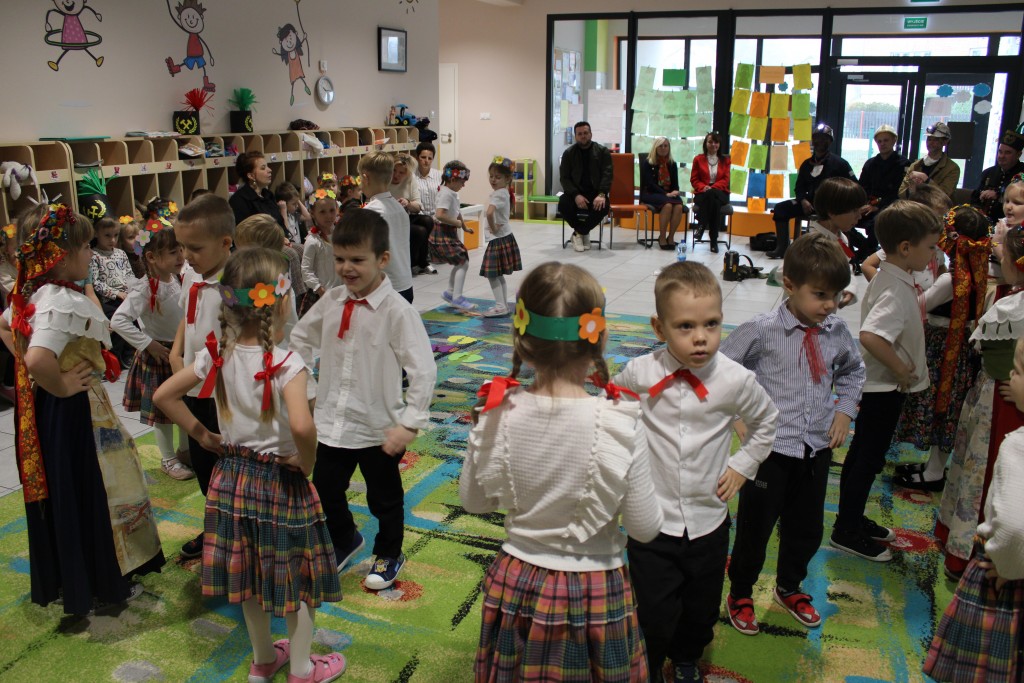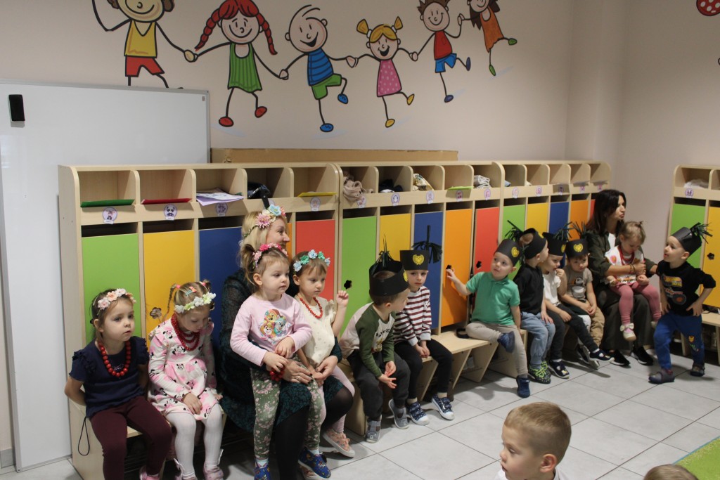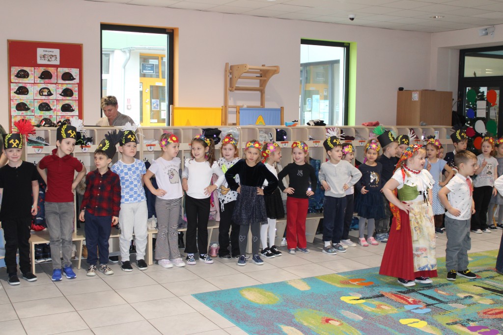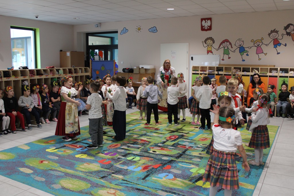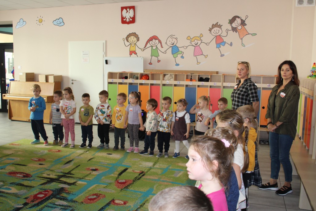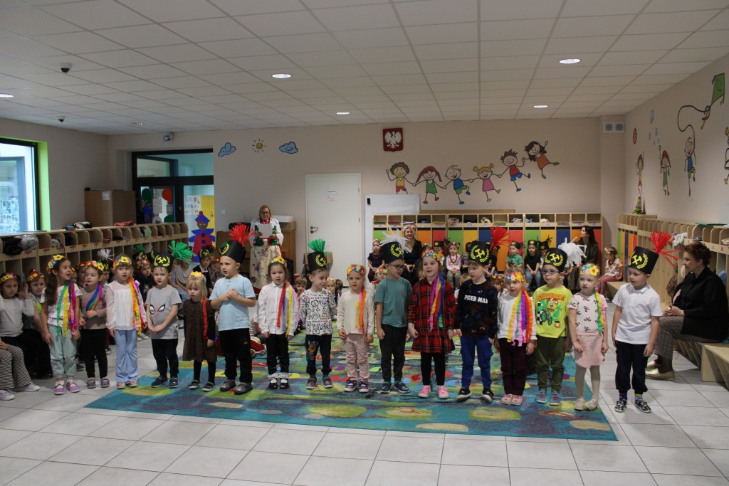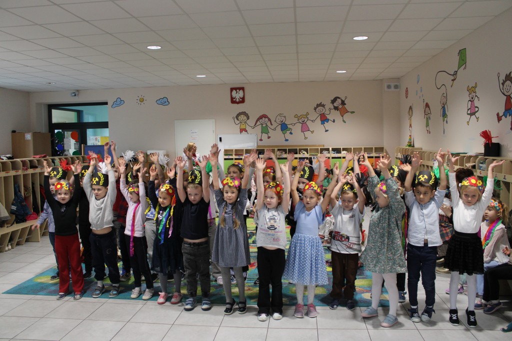 O godzinie 11:11 wszystkie grupy zebrały się w szatni. Przedszkolaki, ubrane w barwy narodowe lub ozdobione własnoręcznie wykonanymi kotylionami, odśpiewały uroczyście „Mazurka Dąbrowskiego”. Dzieci śpiewały z dużym zaangażowaniem i powagą, a cała uroczystość przebiegła w podniosłej atmosferze.