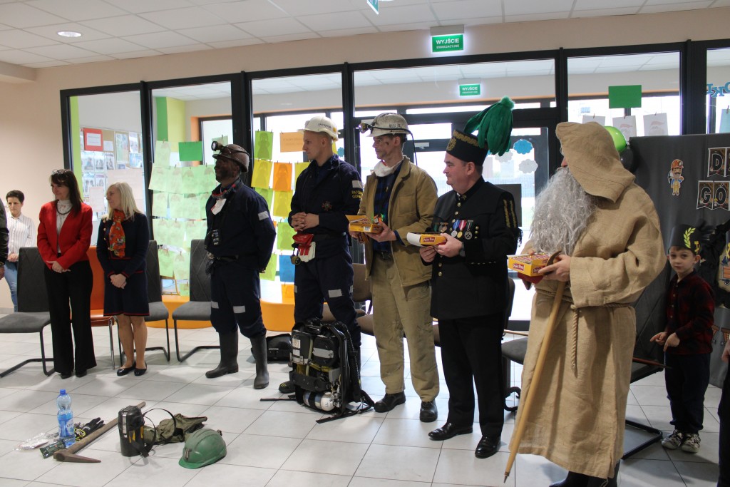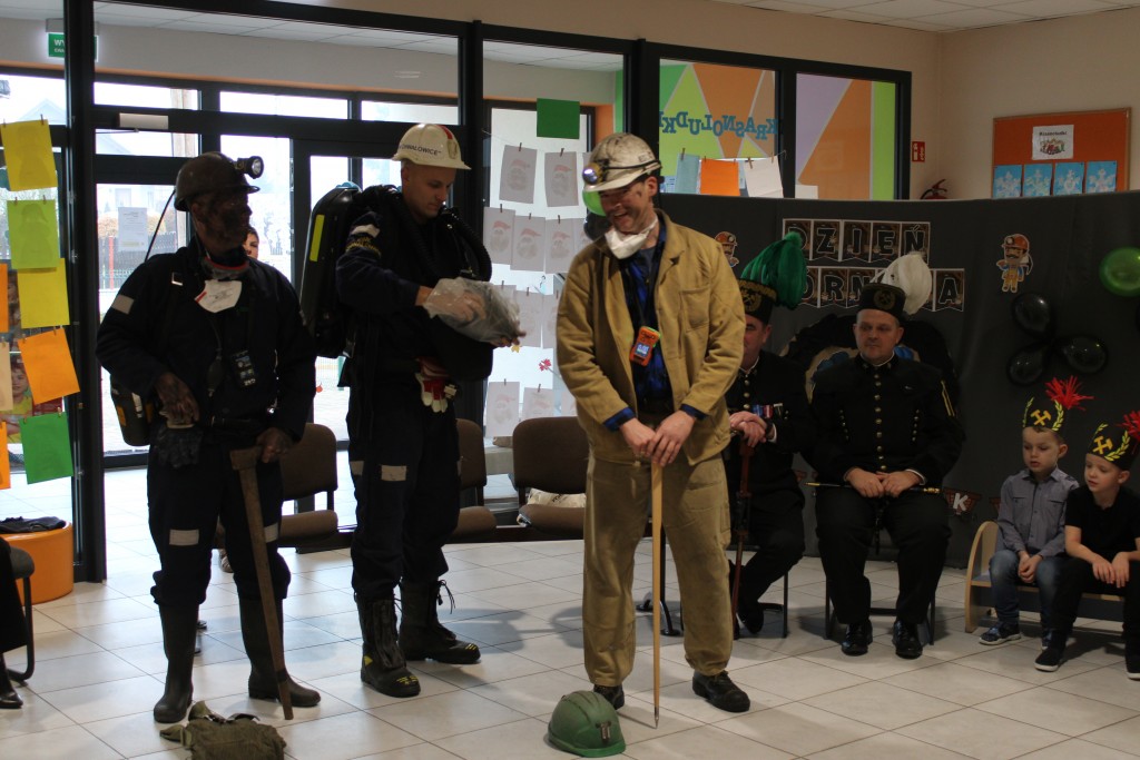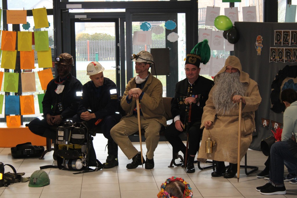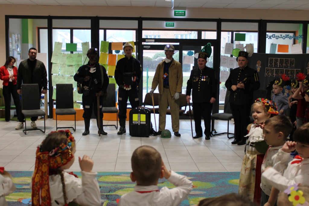 Z okazji zbliżajacej się Barbórki 1 grudnia b.r. do przedszkola przybyli specjalni goście, którzy przekazali przedszkolakom wiele ciekawych wiadomości na temat pracy w kopalni, patronki górników, odznaczeń oraz symboli górniczych. Dzieci mogły posłuchać życiorysu św. Barbary, przymierzyć galowe czapki górnicze czyli czako z różnymi kolorami pióropusza, a także sprawdzić czy na mundurze górniczym jest zgodnie z legendą 29 guzików.