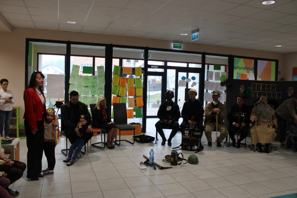 W naszym przedszkolu obchodziliśmy wyjątkowe święto – Dzień Górnika. Uroczystość rozpoczęła się od serdecznego powitania gości przez dzieci i nauczycieli. Już od pierwszych chwil wydarzenie budziło ogromne zainteresowanie przedszkolaków, którzy z zaciekawieniem obserwowali zarówno galowe mundury, jak i stroje robocze zaproszonych górników.W trakcie spotkania goście opowiadali o swojej codziennej pracy pod ziemią, prezentując różne elementy wyposażenia górniczego. Dzieci miały okazję zobaczyć z bliska m.in. lampy górnicze, hełmy, specjalistyczne narzędzia, a nawet dotknąć niektórych sprzętów. Górnicy w przystępny i ciekawy sposób tłumaczyli, jak wygląda ich praca, jak dba się o bezpieczeństwo w kopalni oraz dlaczego ich zawód jest tak ważny. Po części pokazowej przyszedł czas na występ artystyczny przygotowany przez dzieci. Przedszkolaki z dumą zaprezentowały piosenki i krótkie wierszyki poświęcone górniczej pracy. Dzień Górnika w naszym przedszkolu okazał się nie tylko fascynującą lekcją o trudnym i odpowiedzialnym zawodzie, ale także radosnym spotkaniem, które na długo pozostanie w pamięci najmłodszych.