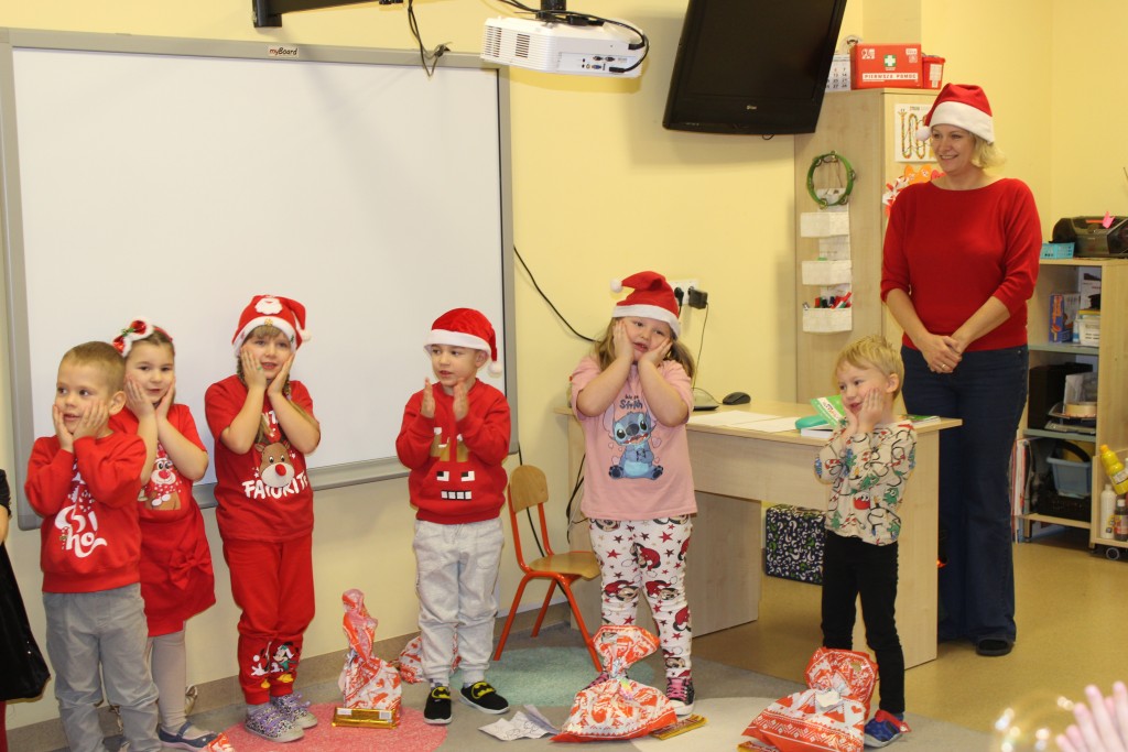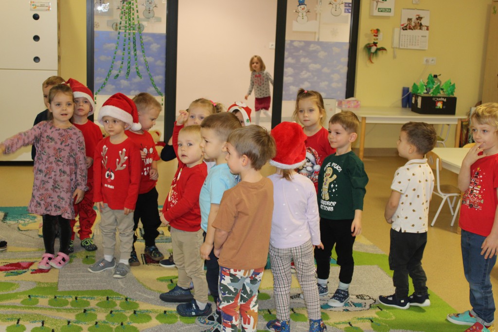 Z okazji Świąt Bożego Narodzenia, każda grupa przygotowała dla rodziców przedstawienia świąteczne. Okazją do przybliżenia przedszkolakom tradycji bożonarodzeniowych było pieczenie świątecznych ciasteczek, wspólne kolędowanie, przygotowanie upominków, kartek bożonardzeniowych oraz wigilijka.